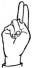 На ћирилици написано АНДРЕЈ БОЛУНОВИЋ састоји се из 15 слова [?]. Исписано ћириличном једноручном азбуком за глувонеме: